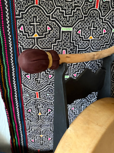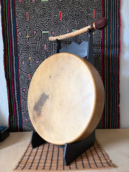 This beautiful handmade elk drum was built from scratch with materials locally sourced from a native drum supply shop in Washington State.