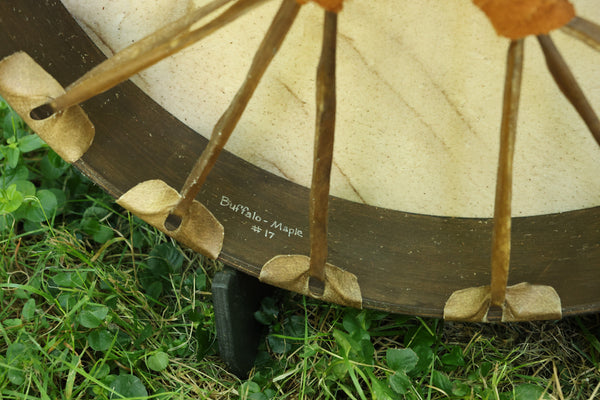 This beautiful handmade buffalo drum was built from scratch with materials locally sourced from a native drum supply shop in Washington State. It has a suede wrapped handle and includes a mallet.