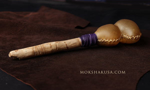 This is a brand new design that Moksha came up with recently. The two chambers are connected, not separate but it still makes the sound of the rattle fuller and more lively than the standard rattle shape.